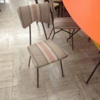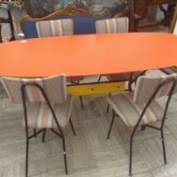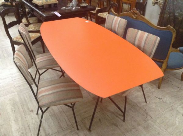 Tavolo di colore arancione con gruppo di 4 sedie. Anni '60