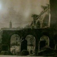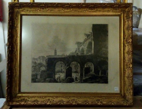 Antica stampa raffigurante il Portico del Tempio della Pace. Completa di bellissima cornice di legno dorato intarsiato.