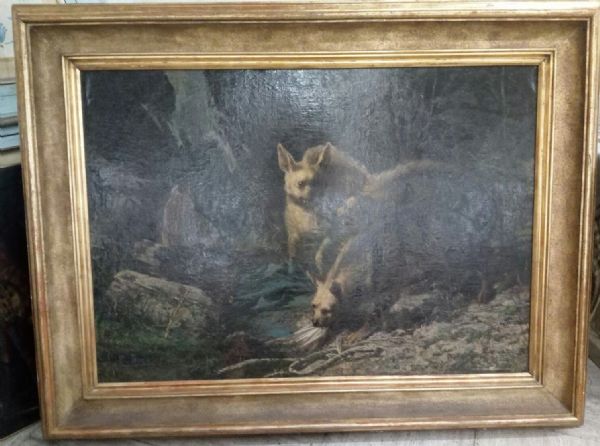 Olio su tela di Pietro Bouvier, dal titolo "Faine nella foresta" .