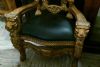 Trono in stile impero in legno intagliato e dorato, XXI sec. Seduta e schienale imbottiti e rivestiti in pelle nera.