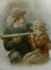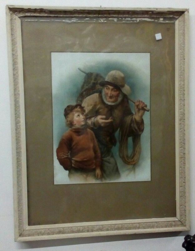 Coppia di antiche stampe raffiguranti bambini e anziani. Entrambe firmate J. Lawson e con cornice a vetro.